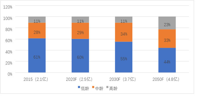 图 分年龄段老年人口占比趋势预测