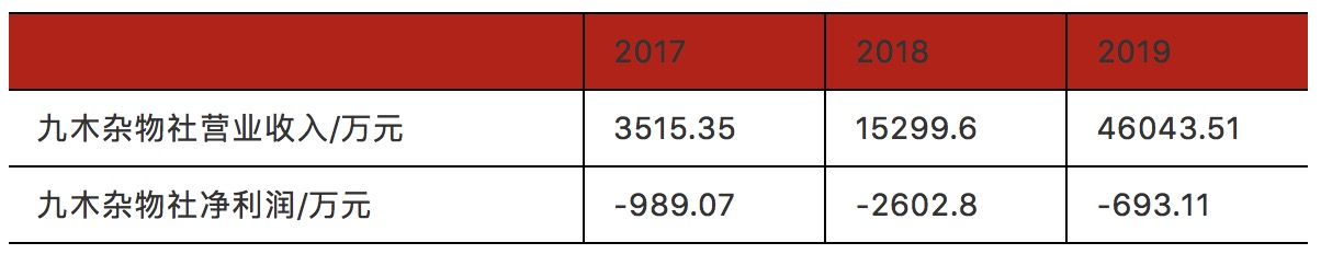 九木杂物社在探索文具类产品销售模式的过程中,也面临着来着利润方面的压力。自2017年以来九木杂物社净利润方面一直处于亏损状态,在2018年启动加盟店策略后净利润亏损最高政策。随着九木杂物社在大城市渠道布局的逐渐成熟,以及与OEM工厂的磨合输出品质一致的产品,其商业模式逐渐趋于稳定,在新颖的商业模式下的盈利情况仍需时日观察。