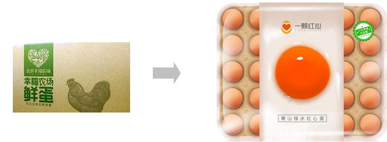 2018年北京鸡蛋市场面对德青源 (81%)、正大鸡蛋(15%)双寡头垄断,和君农业板块品牌营销策划团队,在李尚鸿老师带领下,将客户原有产品升级策划为“第一眼爆品”(见下图)
