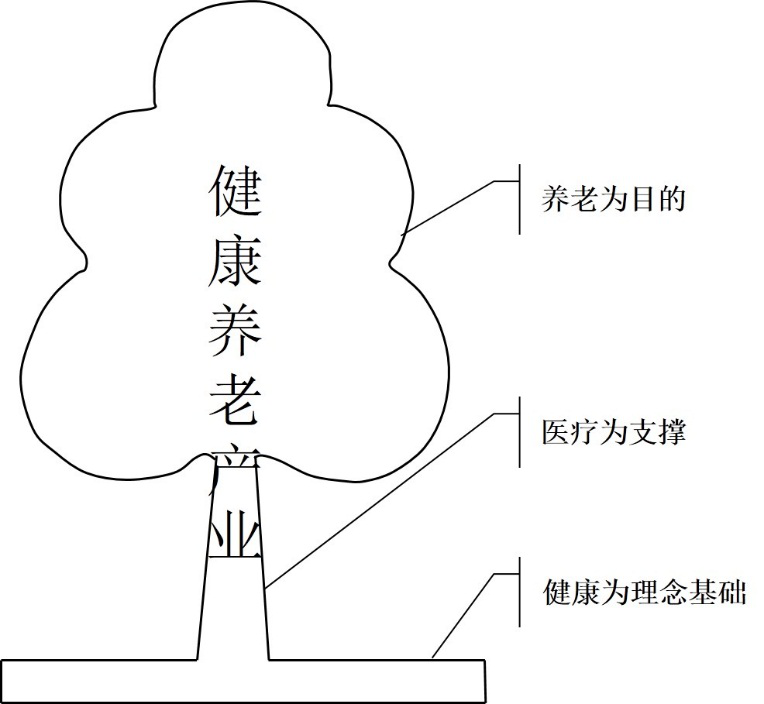 图1.1 健康养老产业“健康+医疗+养老”三位一体架构图