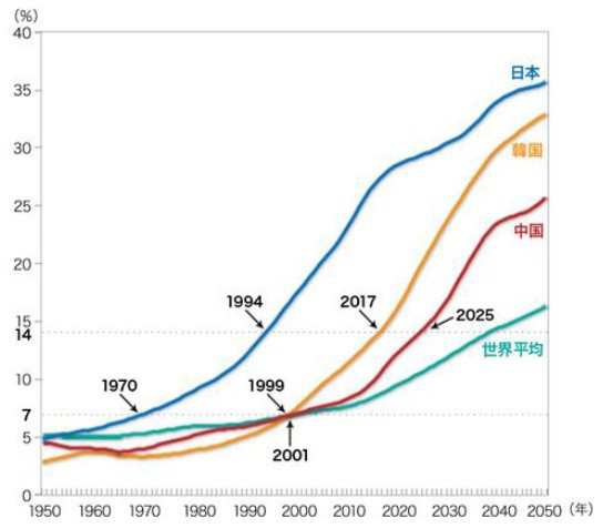 图3.2 世界主要国家65岁以上人口比重及其预测