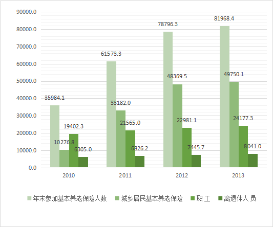 图3.9 2010-2013年我国参加基本养老保险人数情况(单位:万人)