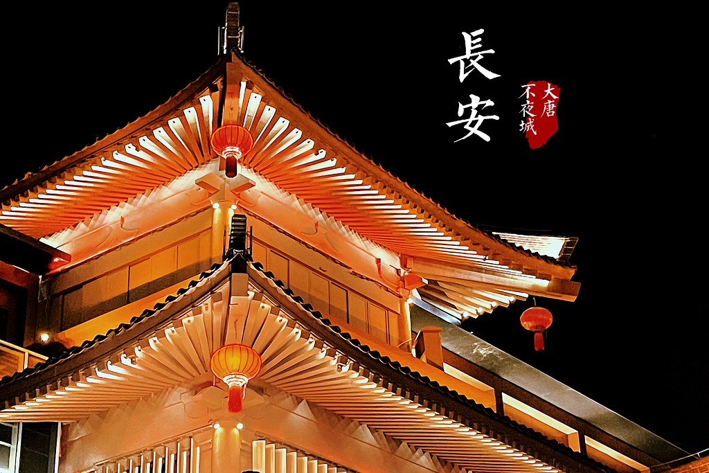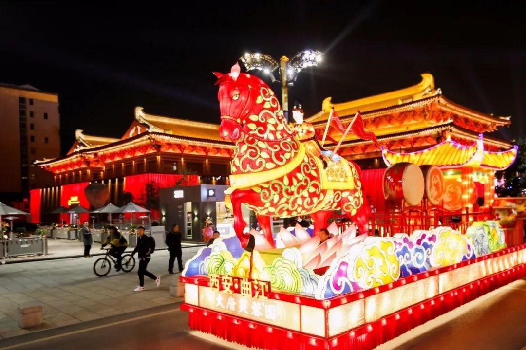 四是活动演艺氛围营造。包括常态化实景演出、音乐舞台、彩车巡游,以及不定期主题赛事活动。街区南北两端的大雁塔北广场和开元广场分别设立了《再回大雁塔》、《再回长安》两大常态驻场实景演出。沿街区道路行走,几乎每隔几十米就能看到不同形式的音乐演出、民谣演出、敲击乐演出、街头艺术、行为艺术、西洋乐器等演出。这种开放包容的环境使得街区成为一个艺术文化交流的平台,吸引各地表演艺人前来,成为大唐不夜城的文化亮点。丰富的夜演与活动也让大唐不夜城实现了从“流量经济”到“留量经济”的转变。