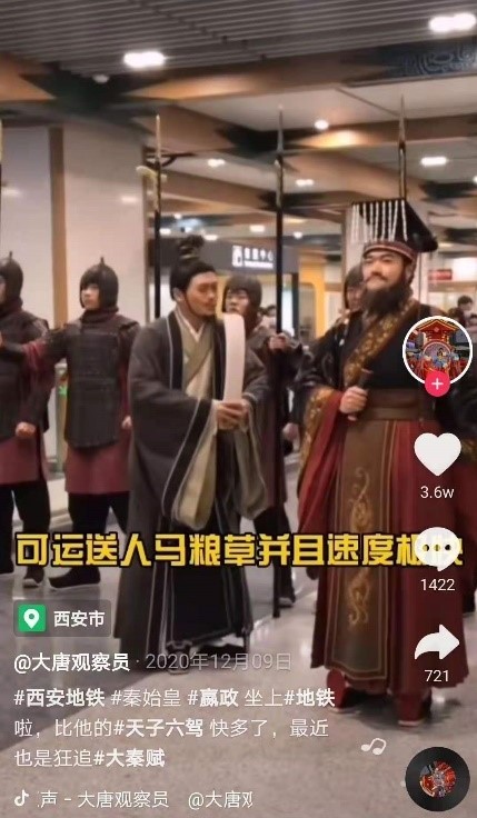 奇——给人以神奇、惊奇的感觉。西安地铁秦陵西站开通当天,通过一出“秦始皇来西安地铁了”的短剧小视频,吸引了2.9亿次的播放。“坐地铁到临潼,还您一个完整的大秦帝国”的宣传口号让人印象深刻。
