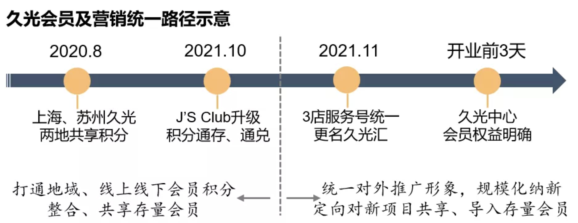 在久光中心开业前的4个月时间内,久光逐步打通地域、线上线下会员积分,整合、共享存量会员,并统一对外推广形象,规模化纳新并定向对新项目共享、导入存量会员,为大宁久光的提前蓄客奠定了坚实的营销基础。