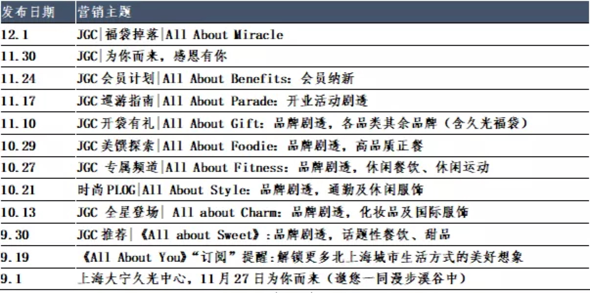 大宁久光中心从公众号建号至开业期间,从内容节奏上可以大致分为四个阶段: