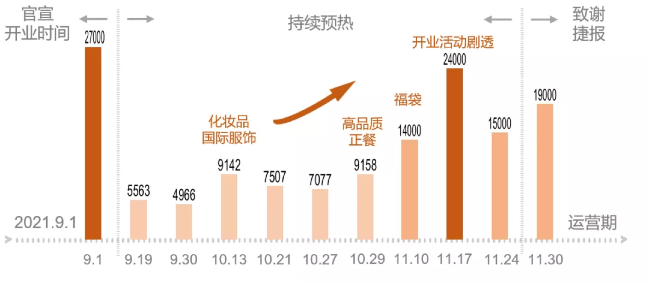 可以说,大宁久光四个阶段营销节奏相辅相成,在开业传播效应最大化的同时,最大程度的进行了消费者纳新。