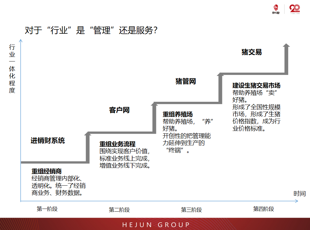 折射出的新理念——轻管理1、从行业视角谋管理决策(关注每一位员工,每一项工作,每一个产品,每一项决策在行业中的位置与影响力) 。这是农信互联案例,区别于其他的案例的根本差异。2、从“人管人”到“平台管人”(工作轨迹建设、更透明的评价体系、海量学习系统)。3、从办公自动化到办公互动化、社区化(协同性、社交化、个性化、娱乐性)。4、从流程管控到系统管理(预设、网状、并发、实时)。5、从渠道管理到用户运维(客户与用户哪个对我们更有价值?)。6、从工厂等基础设施的建设到产业运营体系建设(控制猪场还是拥有猪场?)