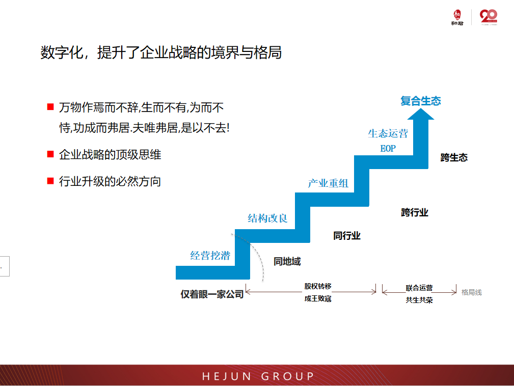 折射出的新理念——重运营1、从企业内部走向行业产业(不想把自己“交”出来的企业只有死路一条);2、从单打独斗到到抛弃旧有边界(部门墙、公司墙、集团墙、行业墙的相继打破);3、从关注企业竞争力到重视供应链竞争力(上下游没有竞争力终究是没有前途的);4、从产品、产业链、产业生态链到产业平台的全景式思考(把产品放在行业里)。